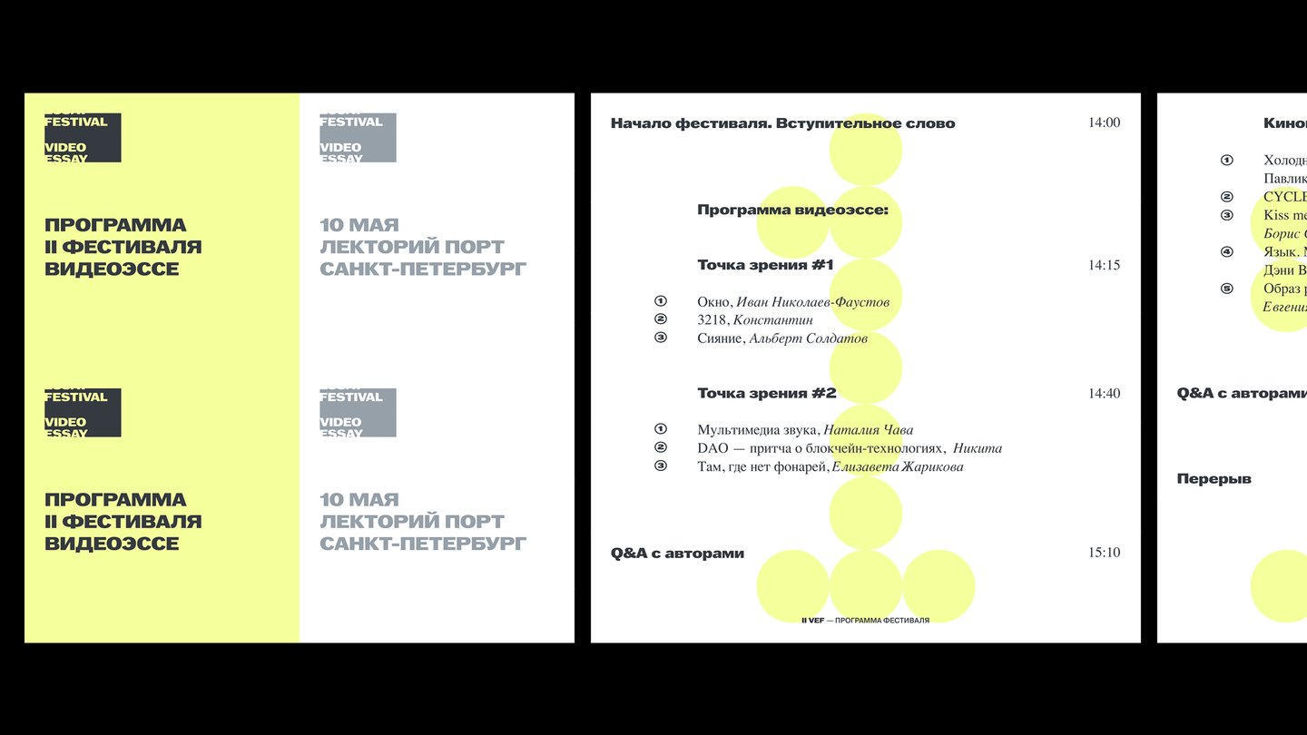 Фестиваль видеоэссе — площадка для исследования видео- и киноэссеистики. Мы собираем работы, которые смотрят на мир под новым углом, соединяя кинокадр, размышления и эксперименты с формой. Это первый в России фестиваль, полностью посвящённый видеоэссе, и он прошёл 10 мая в Санкт-Петербурге.