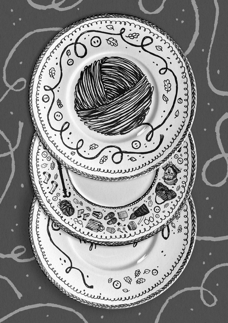 Здесь я продолжаю раскрывать тему уюта и бабушкиной заботы через образы ниток, пряжи, а также различных текстур.