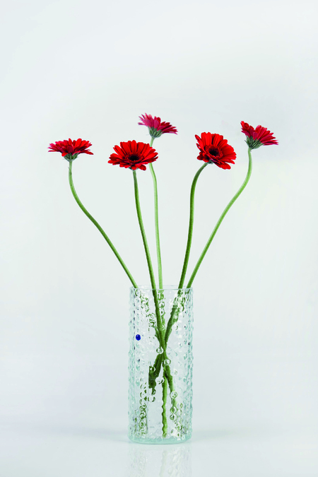 A glass vase that imitates bubble wrap for packaging fragile items. The vase embodies the dialogue of fragility and its protection. Despite the airy silhouette, the design retains its laconic elegance — an ideal accent for a modern interior. It seems to remind you that even in a fragile world you can find support, and beauty is born at the junction of functionality and art.