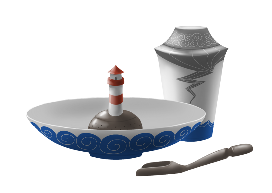 Фарфоровая чайная коллекция, вдохновлённая историей о загадочном исчезновении трёх смотрителей маяка после тяжёлого шторма.