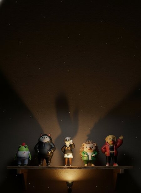 Я — страстный коллекционер, который собирает всё подряд: от редких монет до забавных безделушек. Этот проект родился из моей глубокой любви к самым близким людям в моей жизни. Я безумно ценю их, восхищаюсь их душой, поддержкой и уникальностью — они мой оплот, вдохновение и радость. Захотелось увековечить эту привязанность в серии коллекционных пластиковых фигурок, где каждый из них предстаёт не просто человеком, а животным, с которым они у меня ассоциируются: кот с длинными усами, лабрадор с женственной грацией, улыбающийся ежик, стильная ласка-девочка и милая лягушка. Аутфиты я выбрал из их реальных образов — те, что, по моему мнению, идеально отражают их внутренний мир, характер и стиль самовыражения.