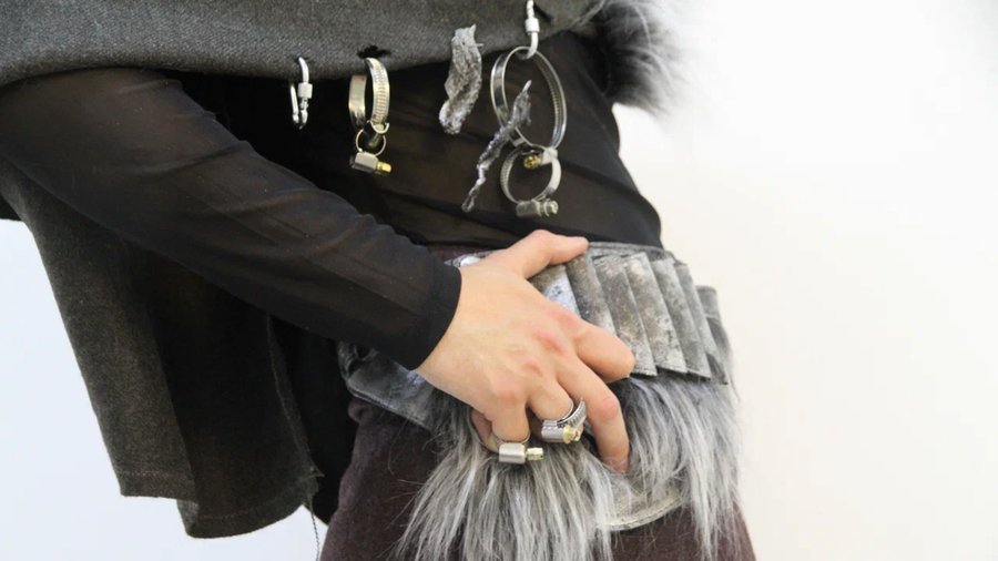 Каждый костюм уникален тем, что перформер принимает определенное положение. Например, Федя и Филипп сидят, а Стас стоит, и это необходимо учитывать в крое изделия, в металлическом обвесе и мехе.