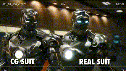 Фавро придерживался мнения, что реальный костюм должен использоваться в кадре всюду, где это возможно. Физическая броня обеспечивала актёрам и съёмочной группе более убедительное взаимодействие с объектами, а CGI применялся для улучшения визуального восприятия или там, где практические эффекты были недостаточны.
