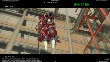 Цифровой костюм Mark II CGI от студии ILM, ILM-супервайзер анимации-Холл Хикел. Супервайзер визуальных/HUD эффектов-Кент