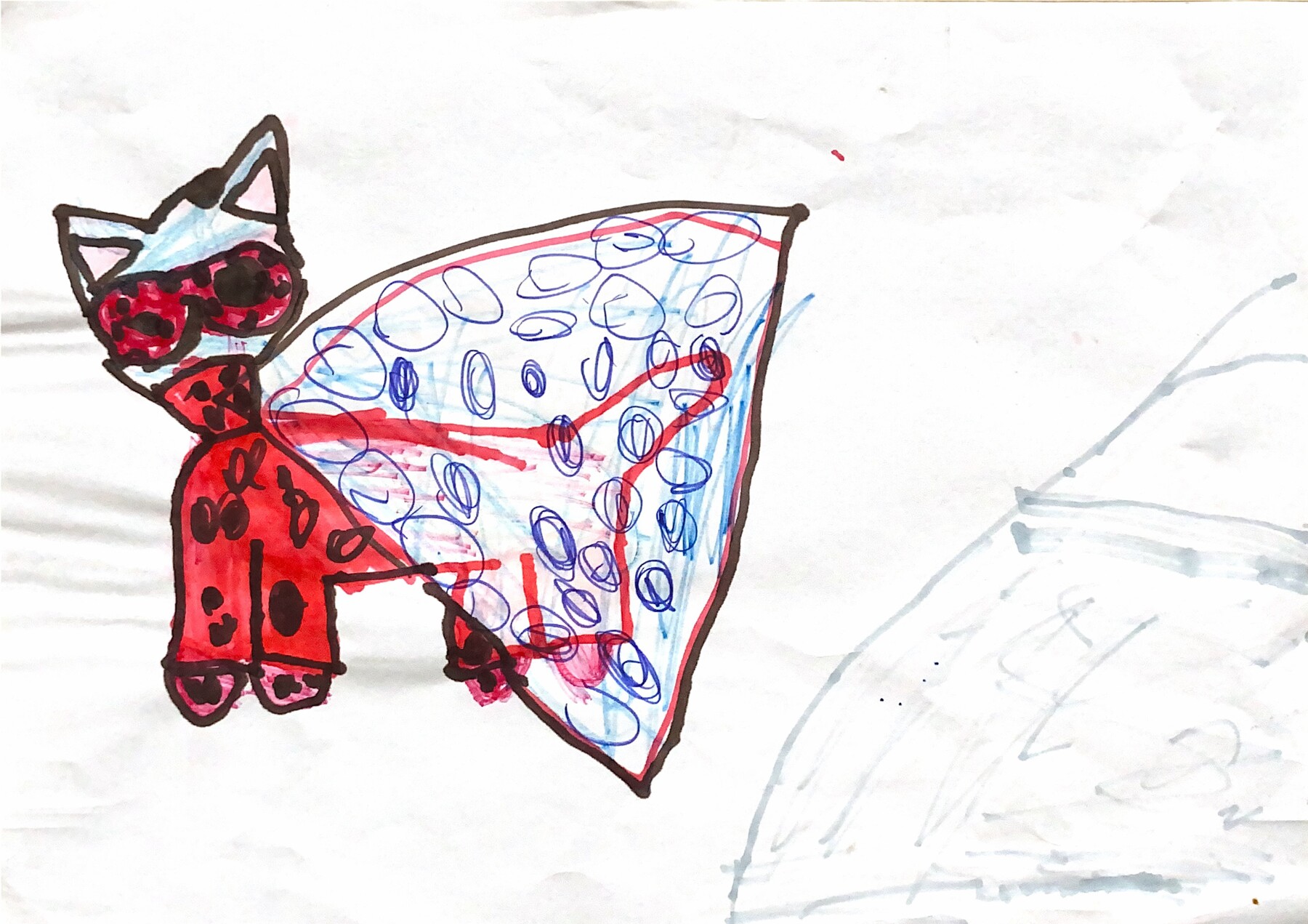 «Супер-кот Лэди Бэг — настоящий герой-пожарный! Её волшебный плащ помогает летать, тушить огонь и спасать всех, кто в беде!»
