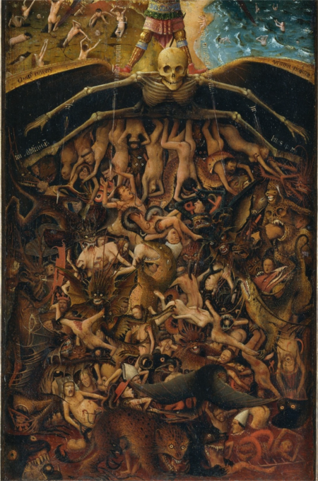 Ван Эйк показывает ад как место одинакового, безличного страдания — человек перестаёт быть личностью, он становится просто телом, которое поглощает тьма.