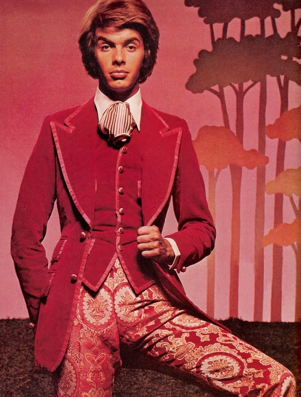 Хотя элементы обращения мужчин к украшательству встречались и ранее, они не имели настолько широкого культурного резонанса. В 1960–1970-е годы ситуация меняется: новая эстетика формируется не как единый стиль, а как совокупность выразительных визуальных решений. Речь идет о насыщенной палитре, смеси графических и орнаментальных мотивов, подчеркнутом внимании к силуэту, а также о новых способах представления одежды. Мужская мода начинает активно взаимодействовать с визуальными искусствами, музыкой, и театральной подачей, что создаёт характерное разнообразие форм и образов.
