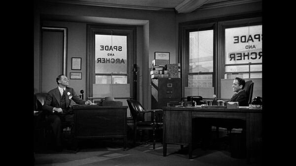 Слева направо: Кадр из фильма «Мальтийский сокол», 1941 г.; Эдвард Хоппер, «Офис ночью», 1940 г.