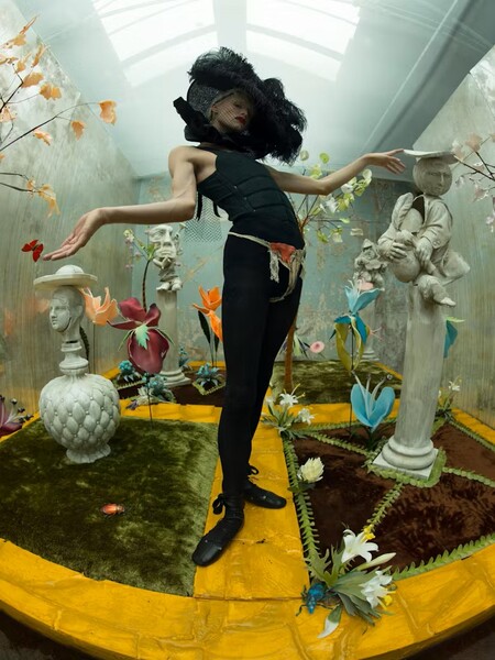 Ироничность проявляется также через намеренно искусственные элементы, декоративность: целлофан, фольга, тюль, бумажные декорации, словно из школьной пьесы. Они контрастируют с роскошными платьями, украшениями.