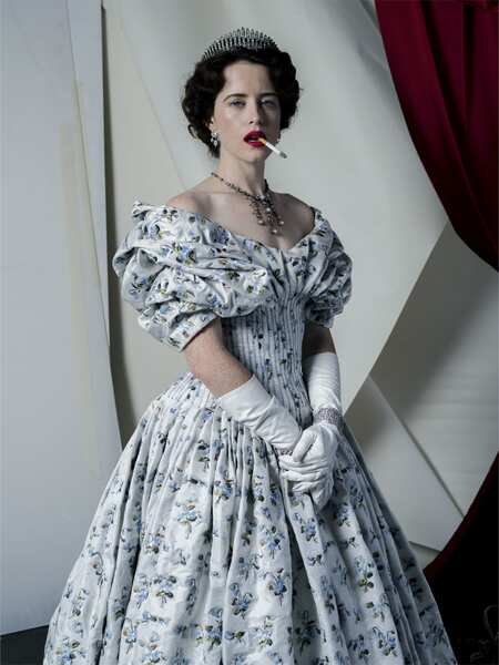 Тим Уокер. Клэр Фой, Курящая королева в платье от Александра Маккуина, 2017 год. Тим Уокер. Коробка удовольствий, 2018 год.