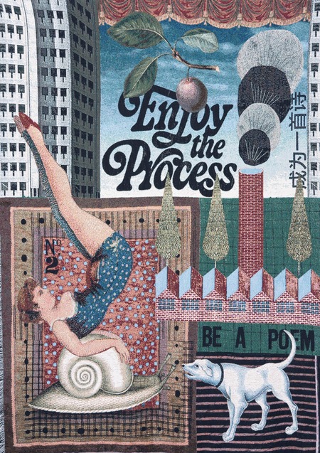 Ковёр Enjoy The Process, 2025 Техника и материалы: жаккардовый гобелен, хлопковая нить Размер: 215×155 см Тираж: 33 шт. Цена: 100 000 руб.