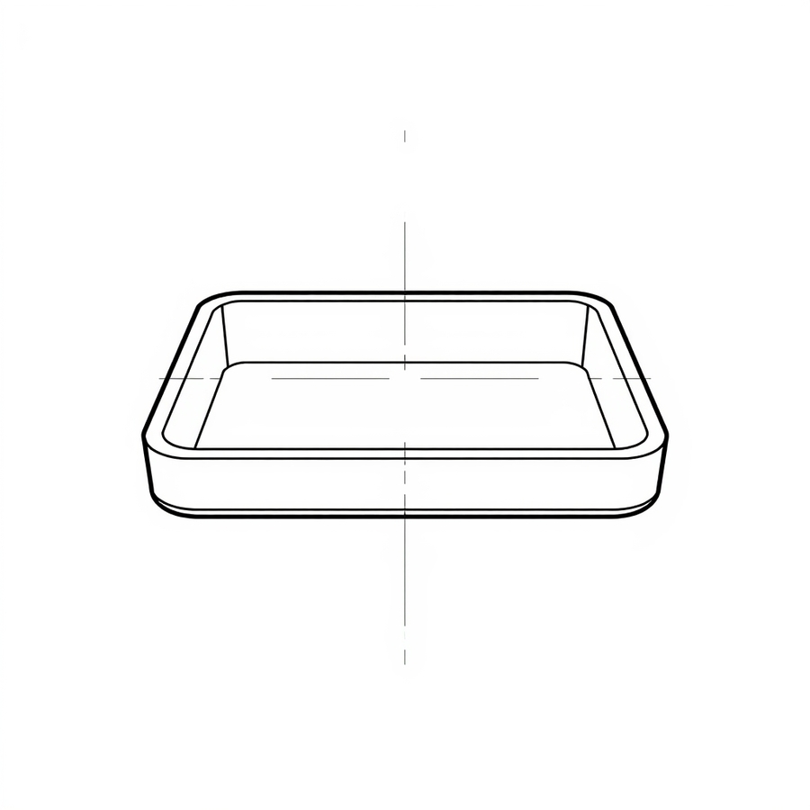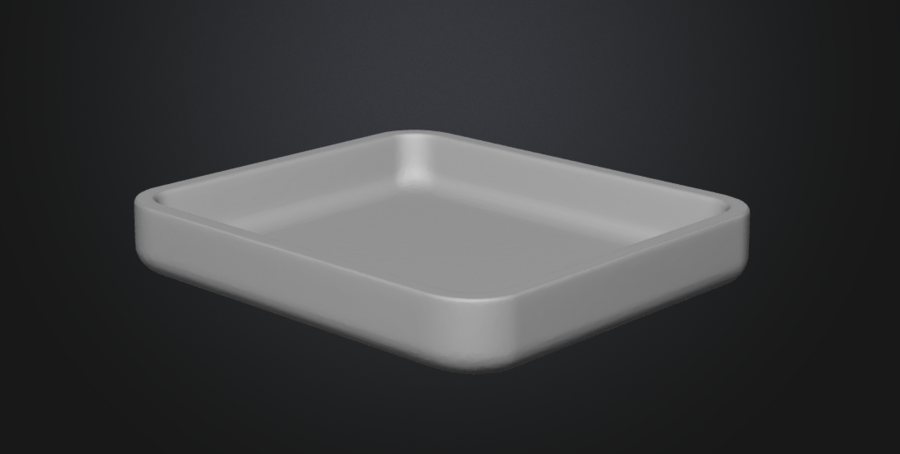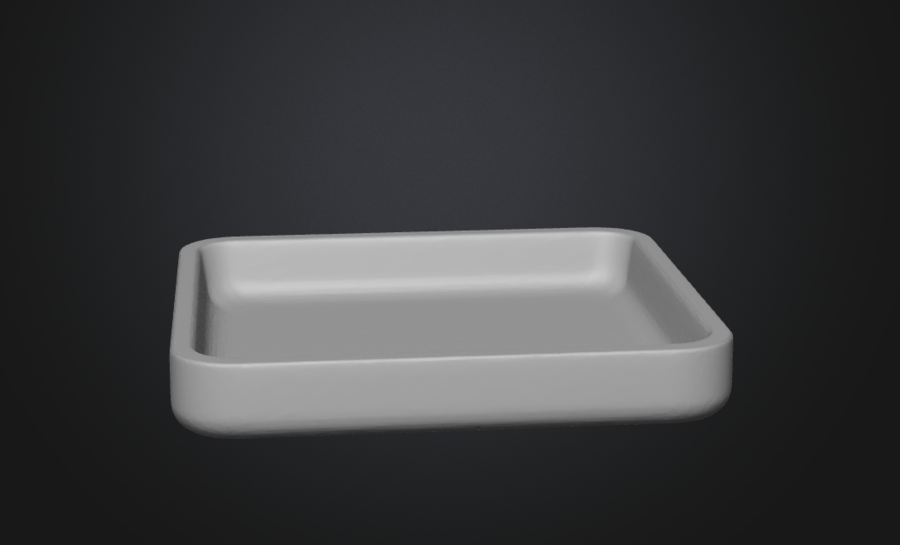 Низкий лоток для хранения мелких предметов. Имеет открытую фронтальную часть и плавно скруглённые края.