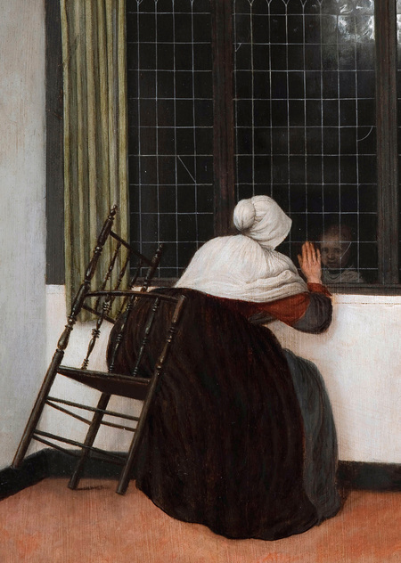 Якоб Врель. Женщина у окна машет маленькой девочке. 1655
