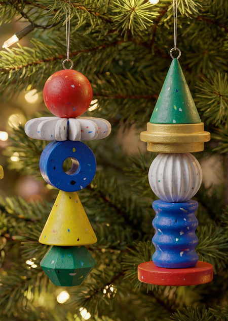 Серия представляет собой набор модульных ёлочных игрушек, выполненных из переработанного пластика. Каждая игрушка состоит из нескольких уникальных элементов, нанизанных на вертикальную ось, что позволяет переставлять модули и создавать разные композиции из одного набора. Модульность обеспечивает интерактивность и индивидуальный подход к оформлению ёлки, а материал подчёркивает ценность переработанных ресурсов