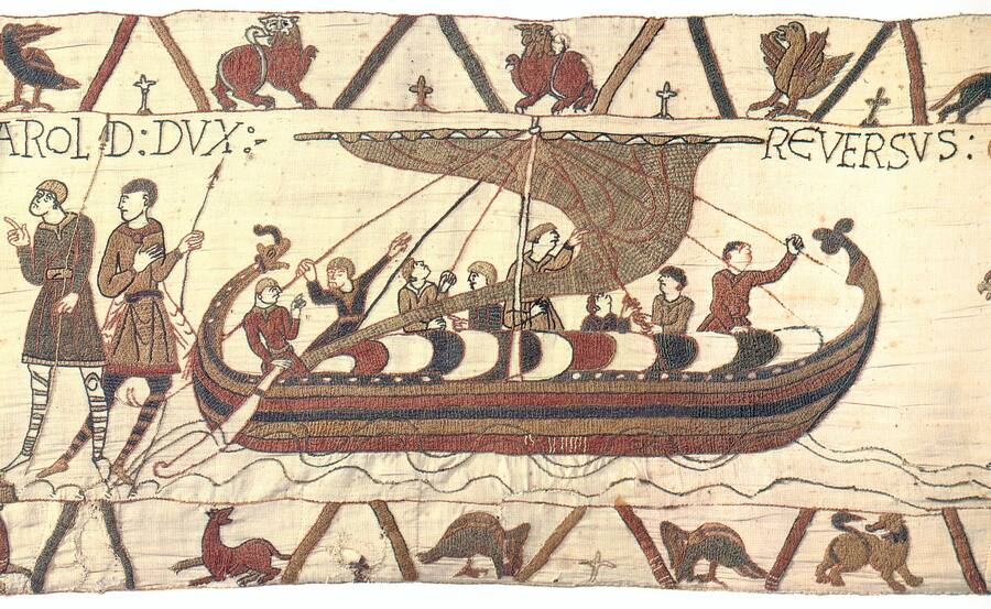 Изображенная история на гобелене из Байё охватывает период с 1064 по 1066 год, начиная с миссии Гарольда Годвинсона в Нормандию, его клятвы верности герцогу Вильгельму, и заканчивая битвой при Гастингсе и смертью Гарольда.