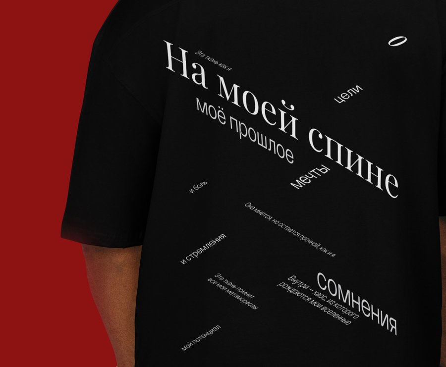 Передо мной стояла задача создания мерч продукции для документальных интервью-исповедей, где герой рассказывает свой путь без позы, без защиты, без мифа о «железном человеке».
