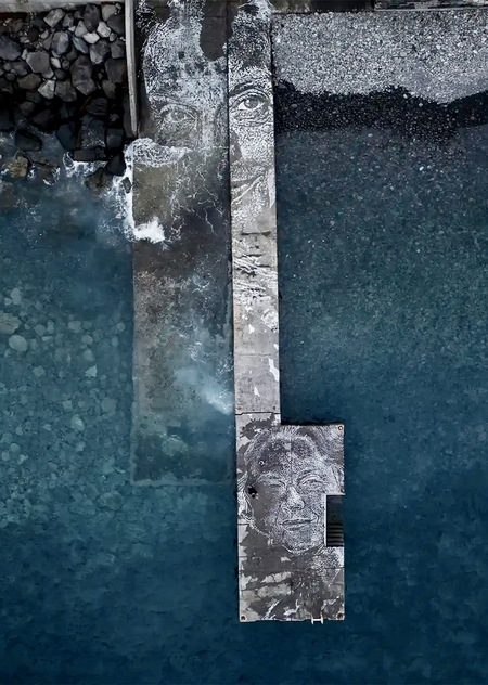 Vhils, Scratching the Surface project: 1. Ulsan University, South Korea, 2024 (photo by André Alves) 2. UNESCO, Paris, France, 2023 (photo by José Pando Lucas)