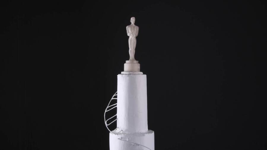 Объект метафорически изображает сложный и длинный путь к признанию, целеустремлённость на пути развития кино, стремление к будущему.