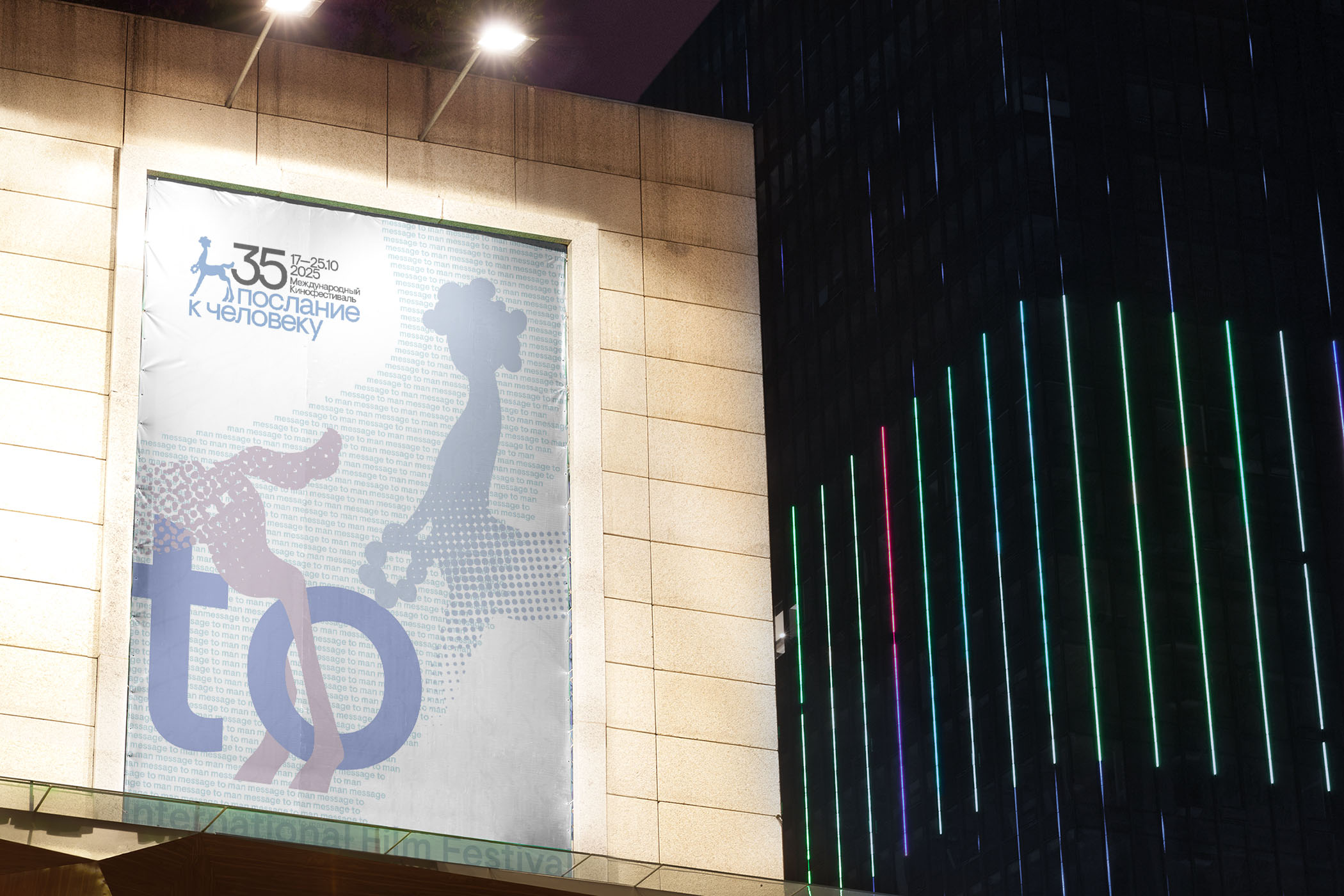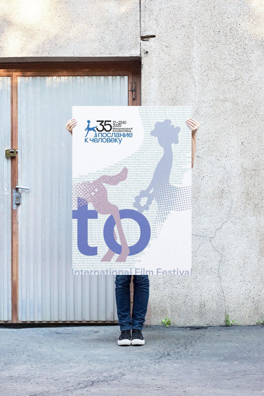 Плакат вдохновлен слоганом фестиваля «Послание к человеку» или «message to man».