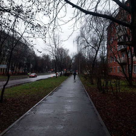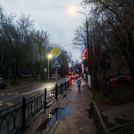 Материалом для исследования являются фотографии, сделанные последовательно в два разных дня, вечером и днём. Они отображают один и тот же маршрут, начинающийся от дома и заканчивающийся парком, который был пройдён не один десяток раз, допуская лёгкие отклонения. Сходства, а главным образом различия этих двух примеров послужили поводом сравнить их и попробовать осмыслить, как множество постоянно меняющихся переменных влияет на опыт восприятия окружающего пространства и собственных переживаний этого опыта. Прохождение одного маршрута в разное время суток, в разных погодных условиях, в разных ментальных состояниях в результате сформировало два одновременно похожих и не похожих друг на друга опыта. В первой части исследования отмечаются внешние обстоятельства внутри этих двух процессов прогулки, влияющие на их проживание и осмысление.