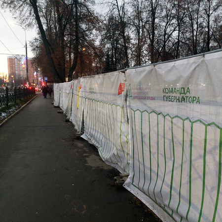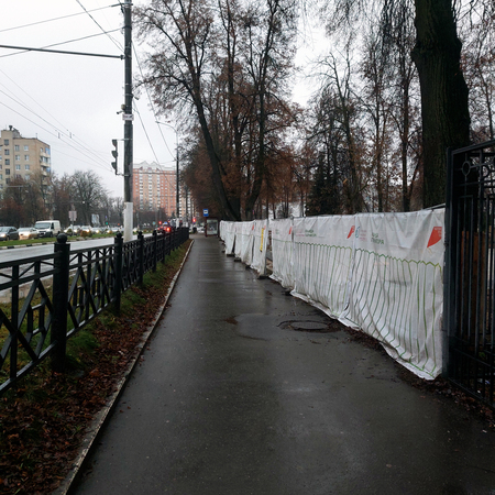 Часть моего привычного маршрута лежала через сквер, который теперь закрыт со всех сторон на неопределённое время — это деталь, которая подчёркивает недоступность некоторых мест и непостоянство внешнего мира. Через полупрозрачный брезент видно, что сквер раскопан, и после опыт хождения по нему будет совсем другим, нежели несколько месяцев назад.