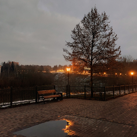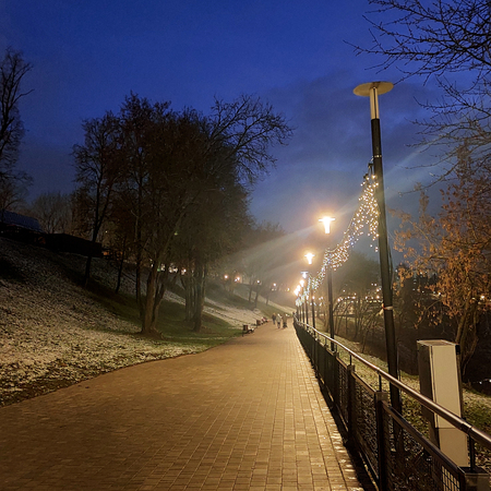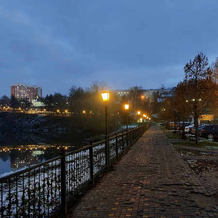 Освещение добавляет парку ощущение обжитого места, без фонарей в пасмурную погоду парк производит мрачное впечатление.