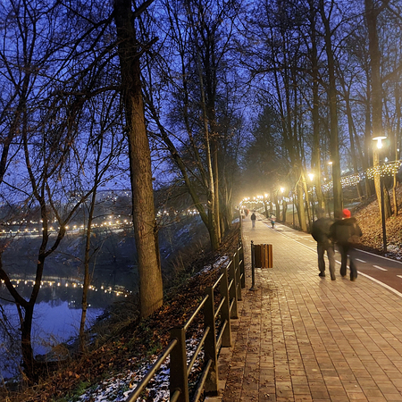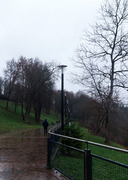 Несмотря на тёмное время суток, прогулка вечером была среди людей, было много гуляющих, тогда как днём другого дня людей было очень мало, и в парке была ощутимая тишина и пустота, присутствовала атмосфера заброшенности.