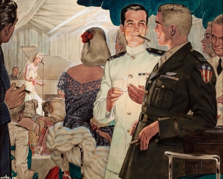 Работы, написанные на житейские и военные темы, чем-то схожи с социалистическим реализмом, но каждый автор добавляет своё видение ситуации, а точнее он поднимает тему скрытых смыслов, которые могут не замечать простые зрители. Действительно американские художники пытались цеплять общество красивой картинкой и яркими цветами.