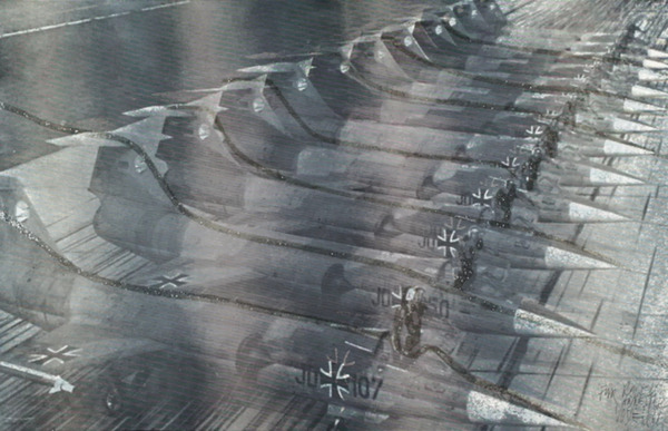 На картине «Звёздный истребитель I» мы видим немецкие самолеты, которые пользовались большим спросом на Западе, однако были сконструированы бывшими деятелями Третьего Рейха — враги становятся союзниками.