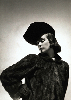 Joan Crawford, photographed by Horst P. Horst in the February 1, 1938 Vogue Model in glass hat by Agnès, photographed by Horst P. Horst in the April 1, 1936 Vogue
