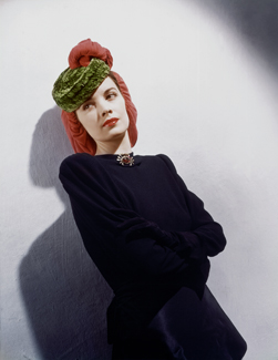 Model in blackbird hat, photographed by Toni Frissell in the November 1, 1939 Vogue Model in green chenille pillbox hat and orange snood, photographed by Toni Frissell in the November 1, 1939 Vogue