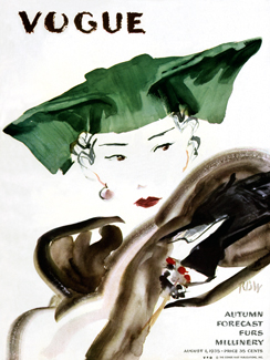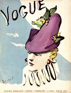 Vogue August 1, 1935 cover, illustrated by René Bouét-Willaumez Vogue February 1, 1936 cover, illustrated by Bérard