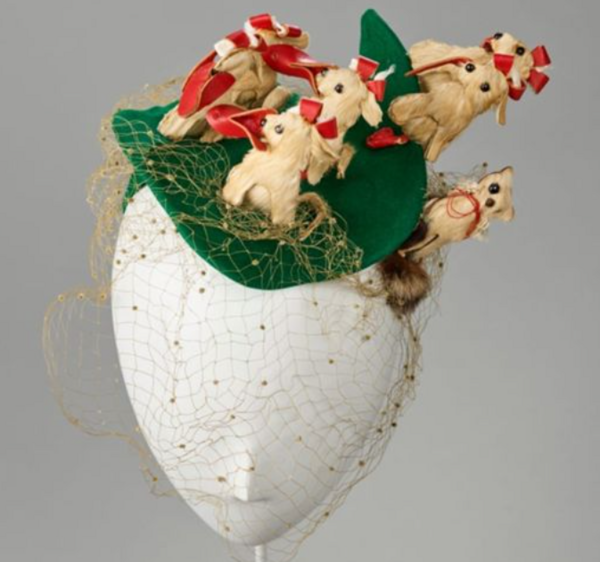 Ну и куда уж без избыточности. шляпы с избыточным декором (насекомые, игрушечные собаки, целые птицы), где вес и объём аксессуара противоречат его предполагаемой удобности.