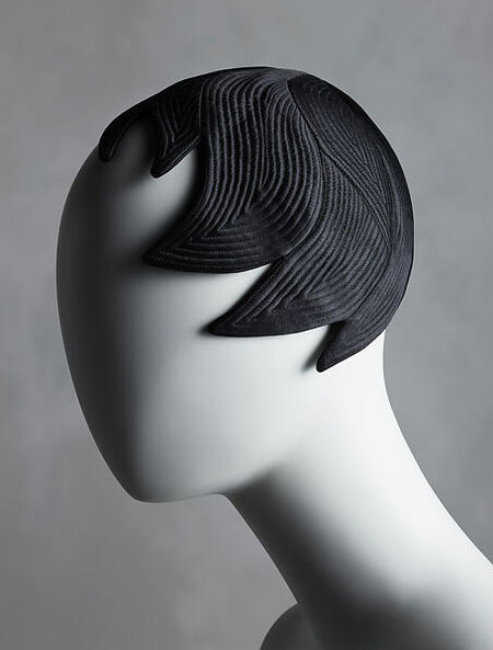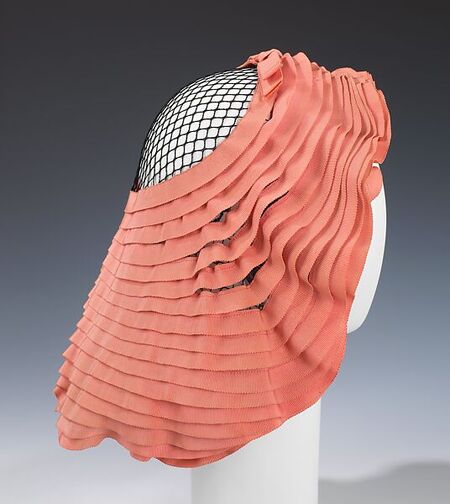 Сюрреализм радикально пересматривает не только образ, но и конструкцию предмета. В скульптуре Арпа и других художников 1930-х годов форма «разматывается» в свободные, криволинейные объёмы, которые кажутся выросшими изнутри, а не сконструированными. В моде того же периода параллельные процессы происходят в конструкциях шляп. Американская миллинерша Салли Виктор в 1940-е годы экспериментирует с концентрическими и складными формами, частично вдохновлёнными японскими доспехами: в одном из описанных Met образцов тулья выполнена как «гармошка», способная изменять высоту.