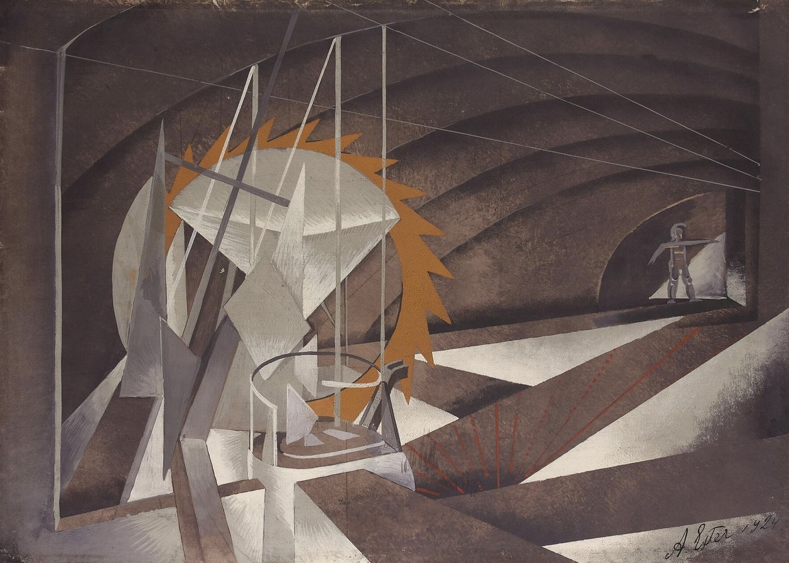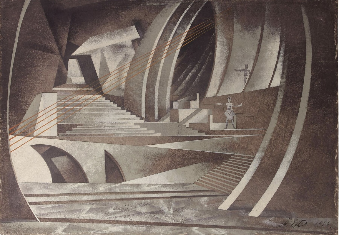 Выставочный проект «Сценография будущего: наследие Александры Экстер» посвящён одной из ключевых фигур русского и мирового авангарда XX века. Александра Экстер работала на стыке живописи, архитектуры, театра и кино, формируя новый язык пространственного мышления. Особое внимание в проекте уделено её сценографическим работам к фильму Якова Протазанова «Аэлита» (1924), где архитектура Марса предстает как утопическое конструктивистское пространство, собранное из различных геометрических форм, ритмов и цветовых акцентов.