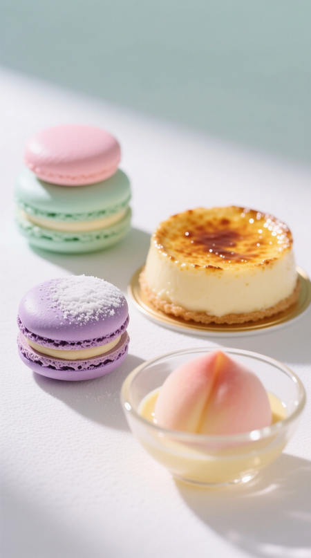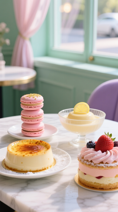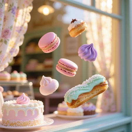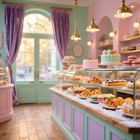 Promt: Pastry. Pastel colors. Realism. Pastel desserts. A shot from afar.