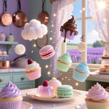 Promts: Pastry. Pastel colors. Realism. Pastel desserts. Magical desserts. Confectionery. Pastel colors. Realism. Pastel desserts.